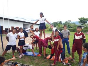 Raphael hat aus Deutschland Malabares (Jonglierbälle) und Diabolos (die wir vor den Kindern lieber als „Kreisel“ bezeichnen) mitgebracht, welche wir gerne in die Sportstunden einbeziehen, um die Koordination und die Motorik zu trainieren. Wenn die „Großen“ ihre Runden auf dem mit Hütchen und Hindernissen ausgestatteten Parkour drehen oder mit den „Kreiseln“ spielen, sehen die „Kleinen“ mit großen Augen zu und würden am liebsten selbst teilnehmen.